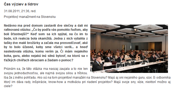 - Nepodceňujte základné znalosti o projektovom manažmente! celý článok